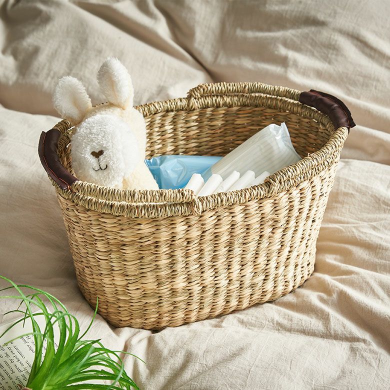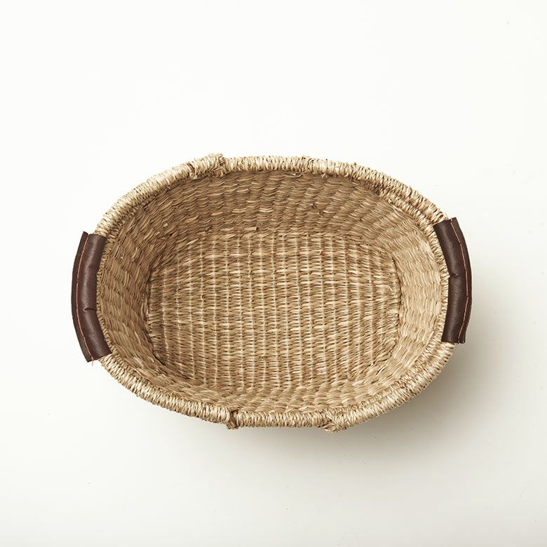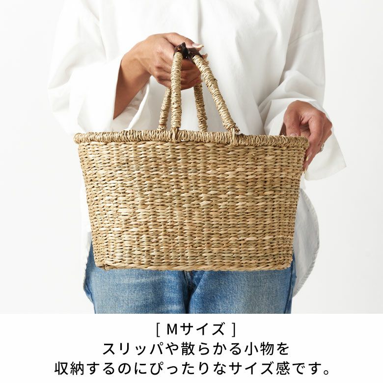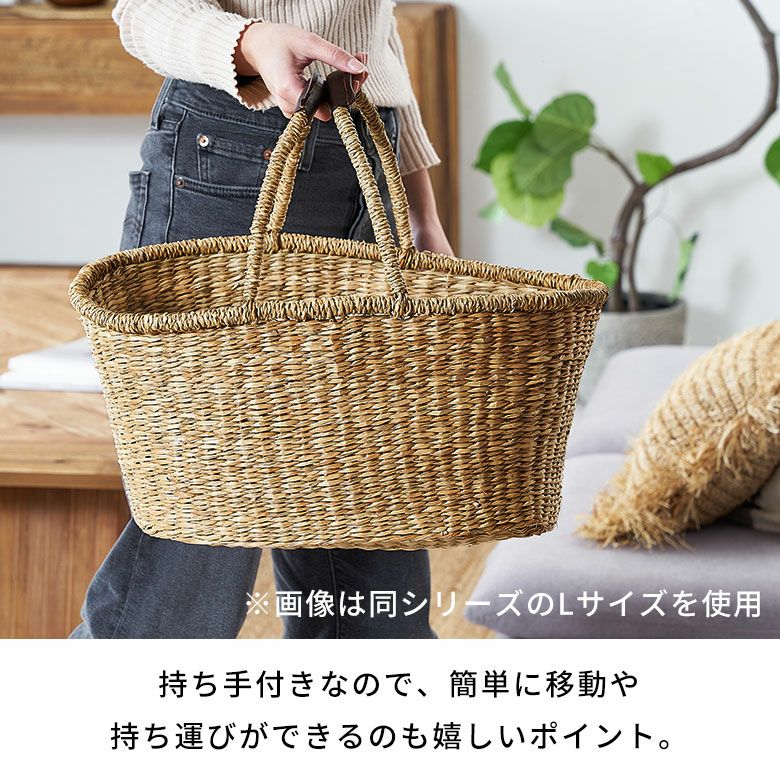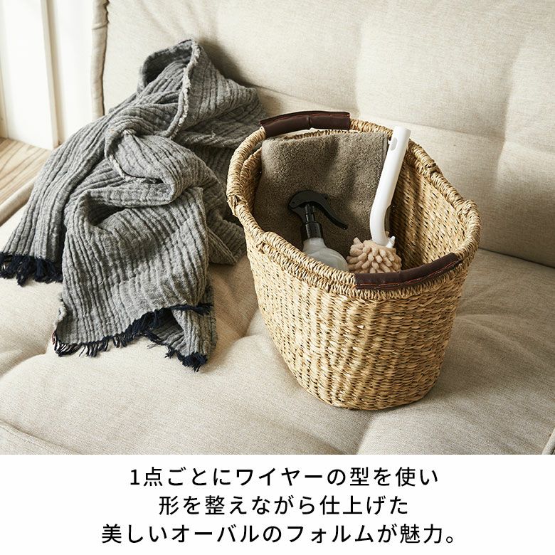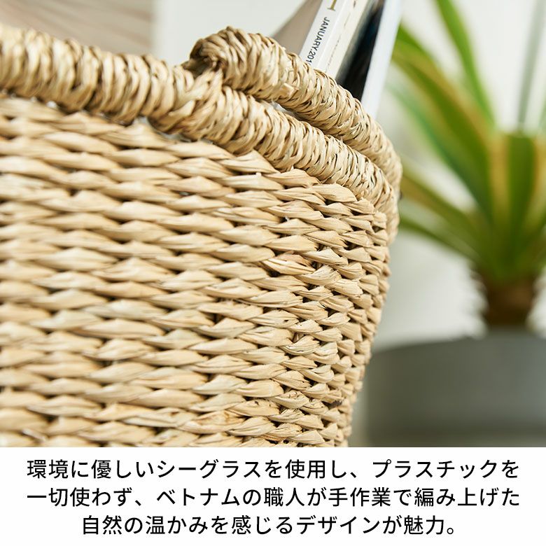 収納バスケット シーグラス ハンドル付き 天然素材 ハンドメイド バッグ バック シンプル 持ち手つき リビング キッチン ダイニング 店舗 レストラン カフェ プレゼント ギフト お祝い 散らかる小物をオシャレに収納できるシーグラスで編まれたハンドル付きかごバスケット(オーバル)Mサイズ [vn51374]