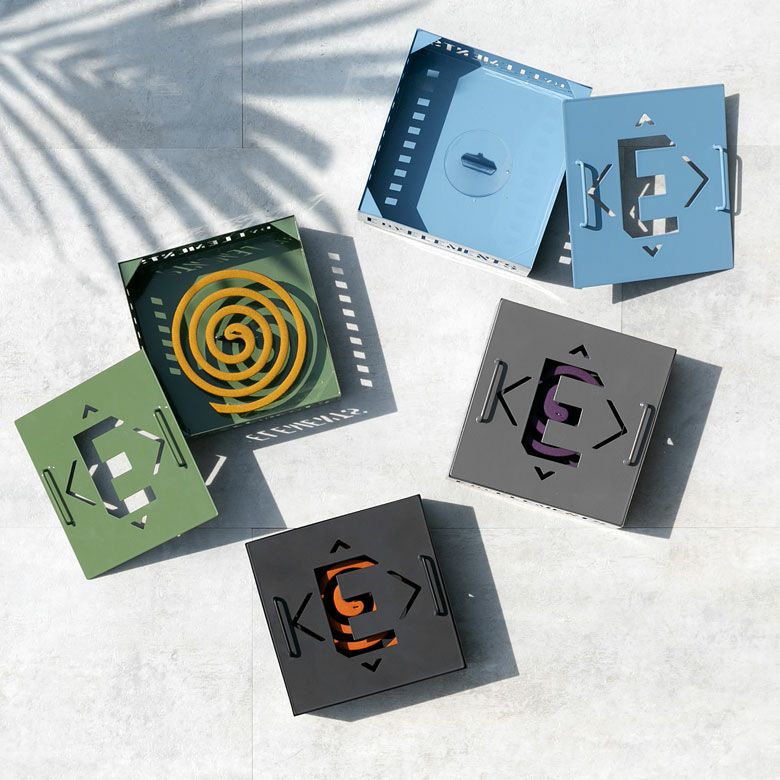 蚊取り線香立て かっこいい スチール キャンプ グランピング 【2個セット】蚊取り線香入れ 蓋付き スクエア型 スリットデザイン 幾何柄 黒 グレー スチール製 約 W 14.5 × D 14.5 × H 6 cm 蚊取り線香ホルダー 蚊遣り 蚊取り線香 かやり 蚊やり オブジェ 小物入れ ブラック おしゃれ アウトドア 屋外 屋内 室内 西海岸 男前 [stc2-67118]
