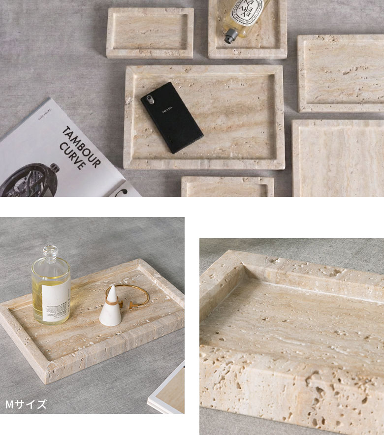 ・上質な天然大理石トラバーチンを使用した、高級感と重厚感を兼ね備えた収納トレイ