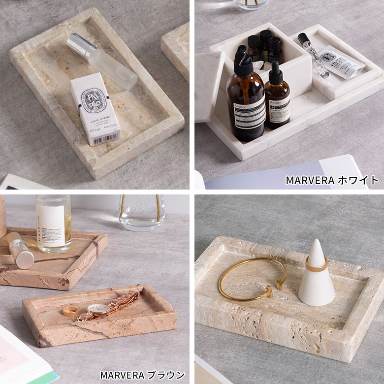 豊富なラインナップが魅力の大理石シリーズ、MARVERA(マーヴェラ)のトラバーチンの小物入れトレイSサイズ。