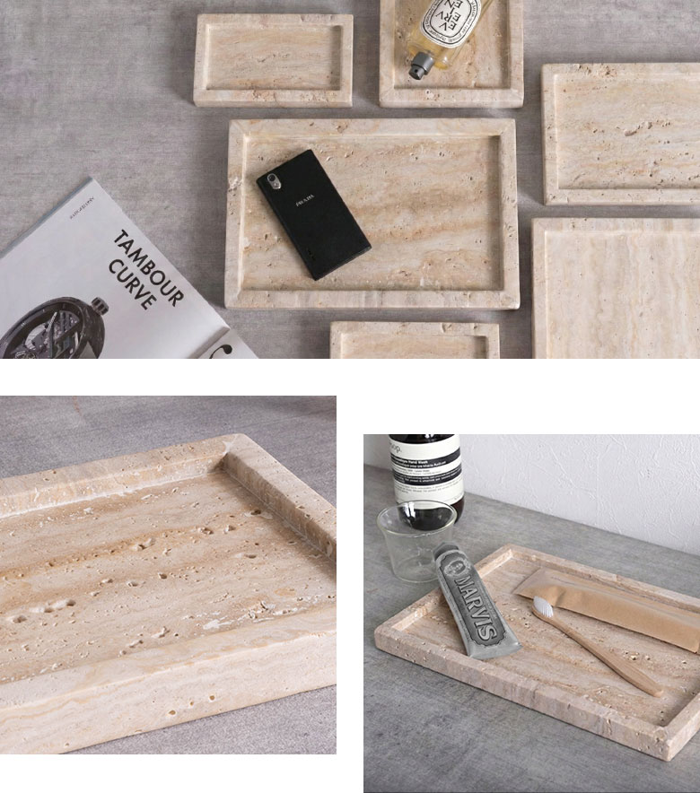 ・上質な天然大理石トラバーチンを使用した、高級感と重厚感を兼ね備えた収納トレイ