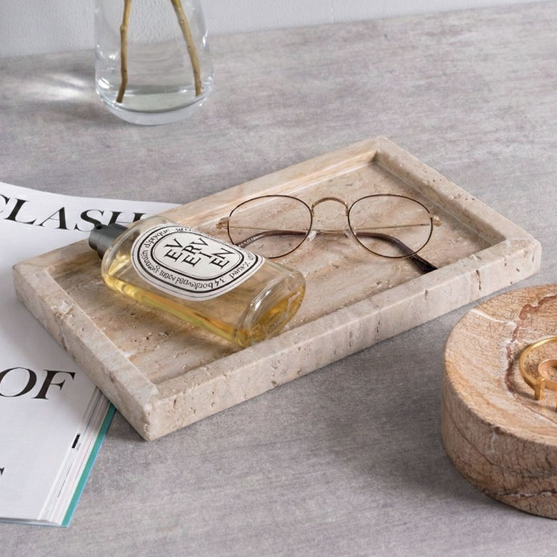 天然大理石シリーズMARVERA(マーヴェラ)のトラバーチンの小物入れトレイMサイズ