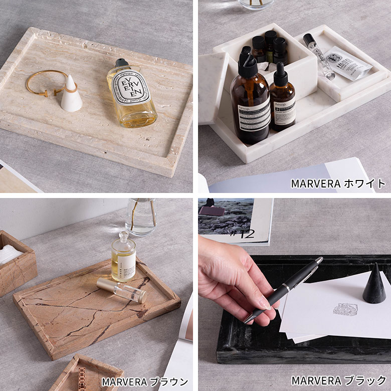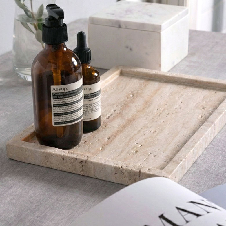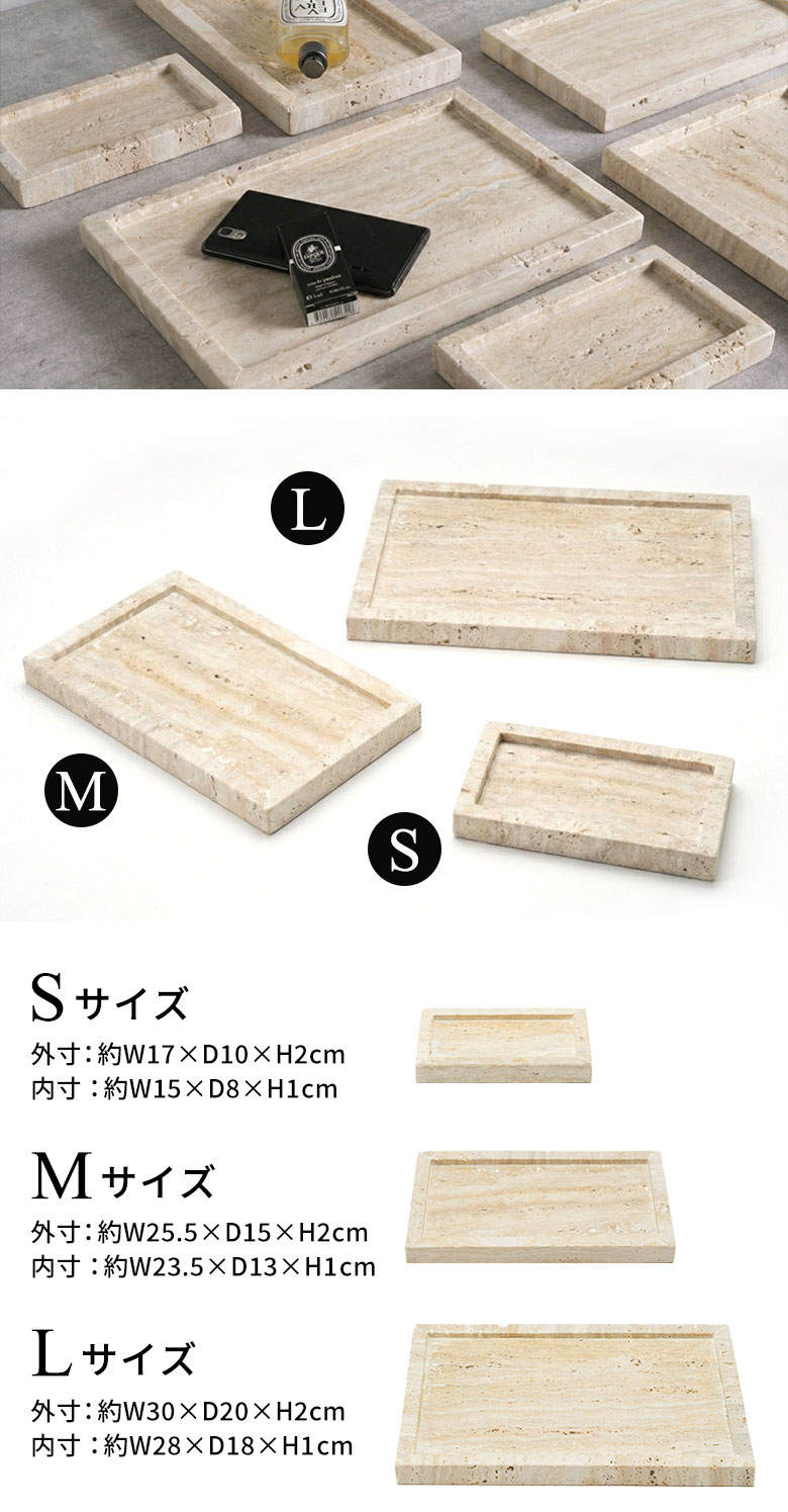 ・上質な天然大理石トラバーチンを使用した、高級感と重厚感を兼ね備えた収納トレイ