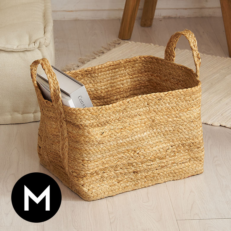 ジュートのスクエアバスケット