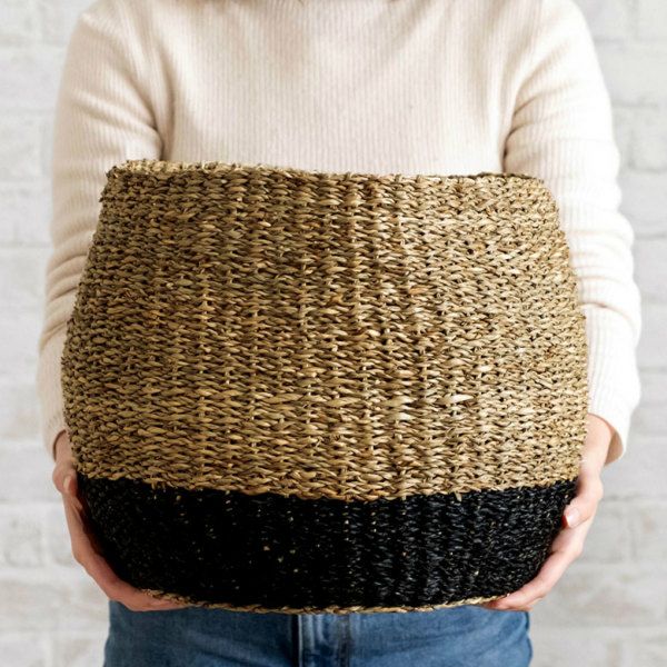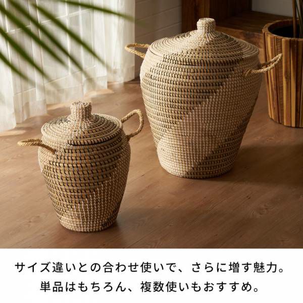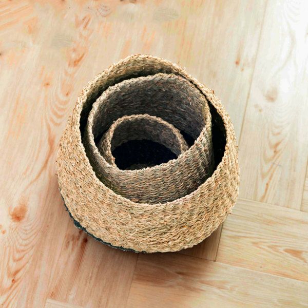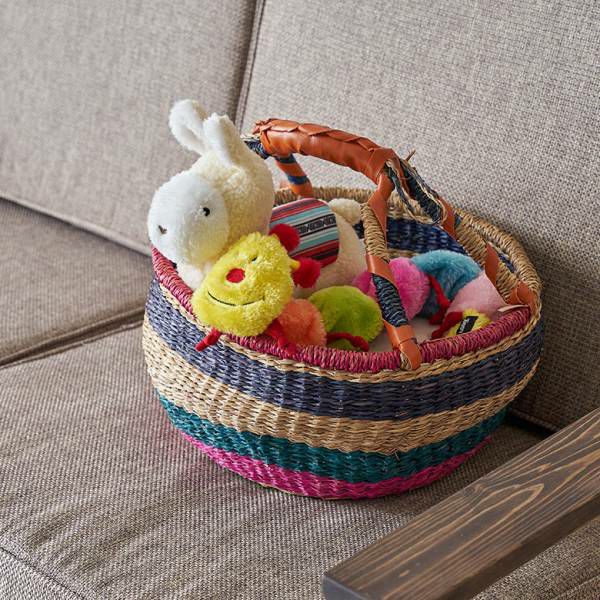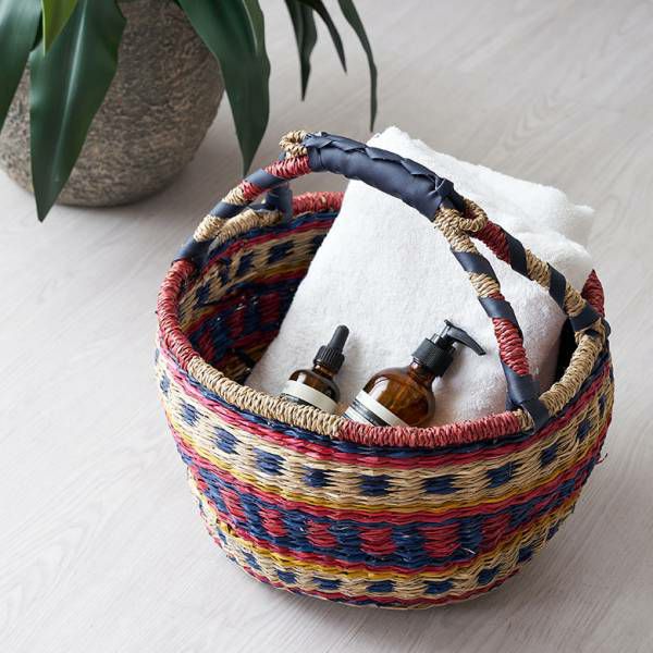 ツートーンカラーが可愛い コットン×ラッシュのバスケット |