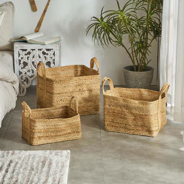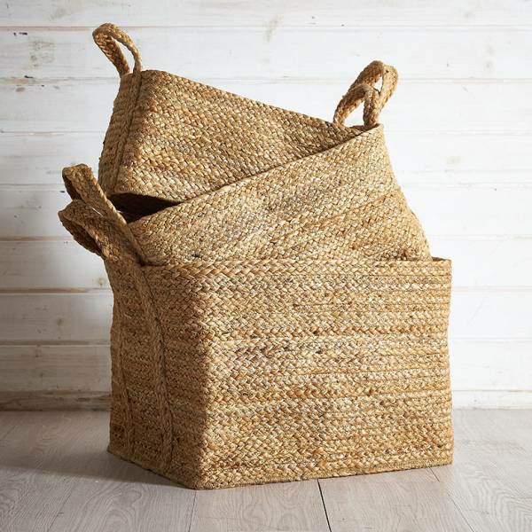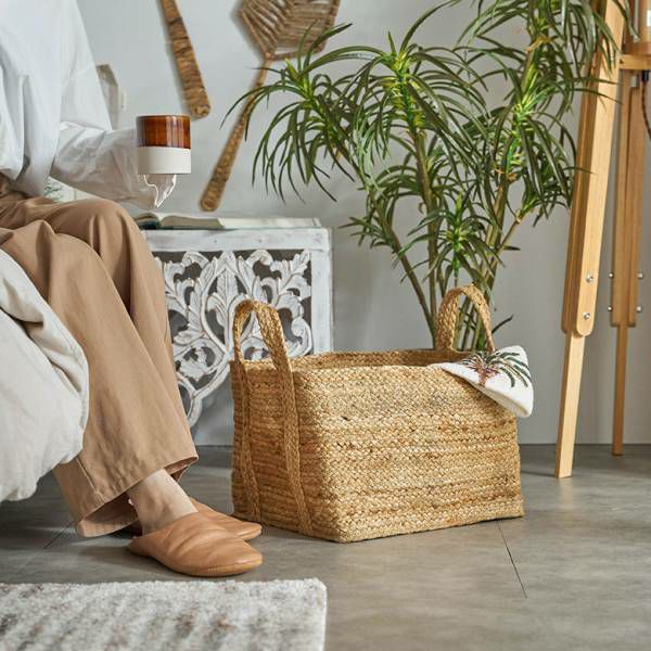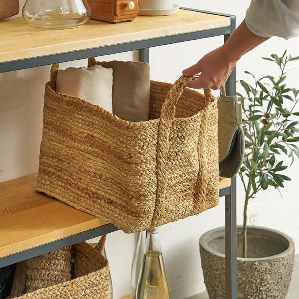 ナチュラルな素材感 ジュートのスクエアバスケット |