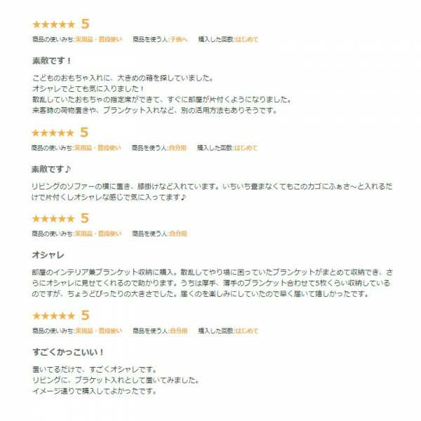 キッチンやリビングでの収納はもちろん、ランドリーバスケットにもおすすめ。