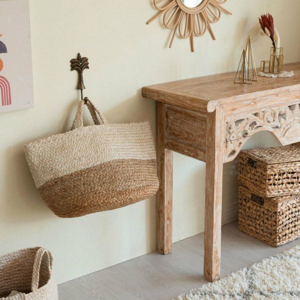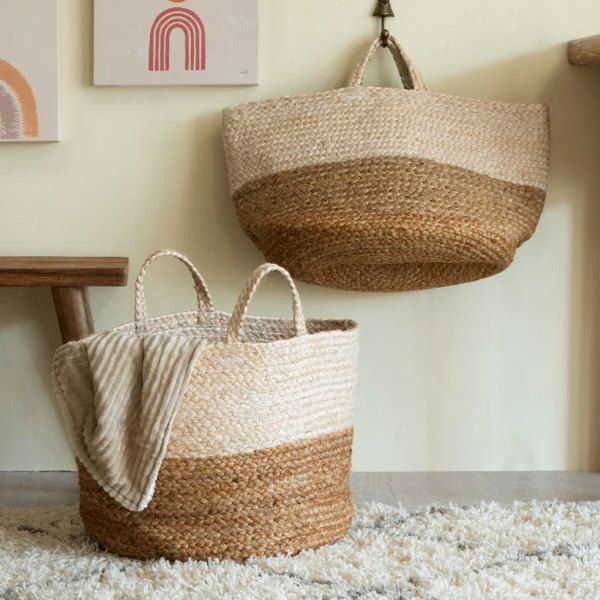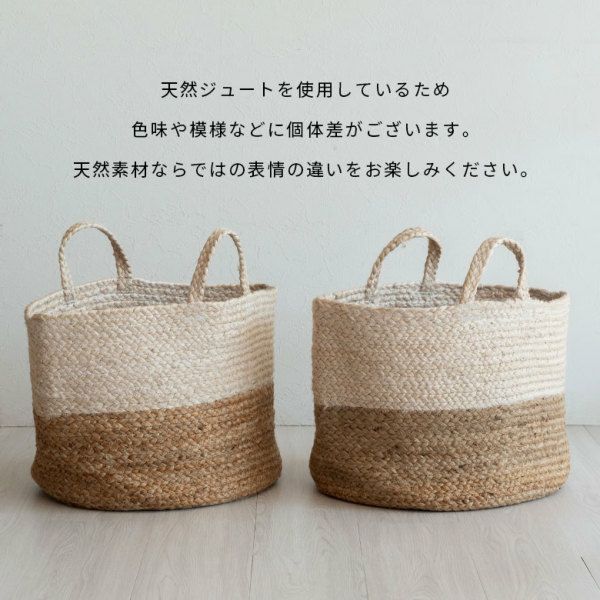ジュート100%のナチュラルさと、ホワイト×ベージュの