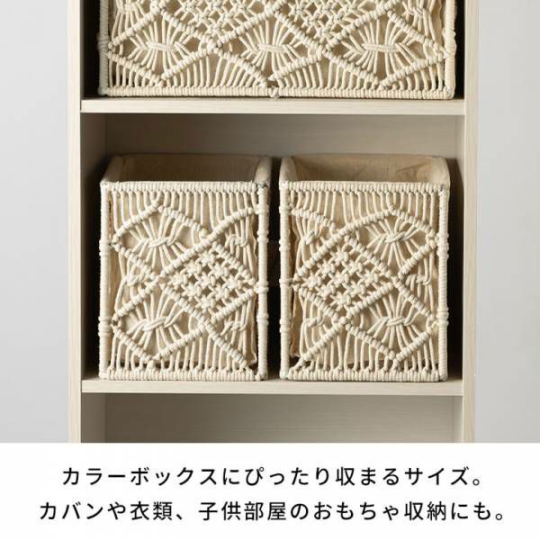オープンシェルフやカラーボックスにも合わせやすいサイズ感。