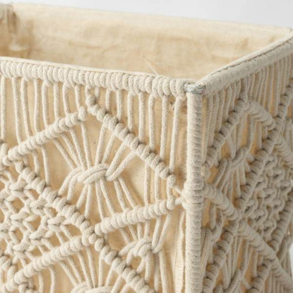 存在感たっぷりのマクラメ編みが魅力のバスケットです。