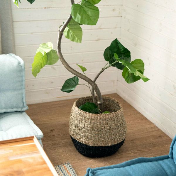 シーグラス(天然素材)を編んで作られたプランターカバーは、