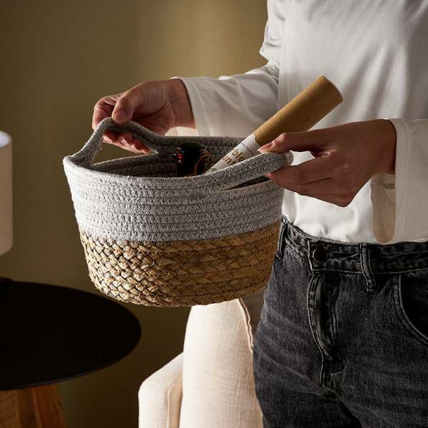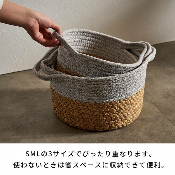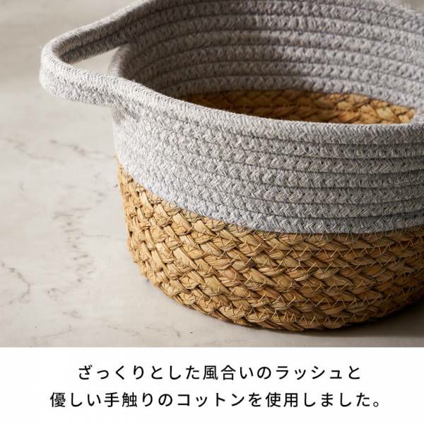 コットン×ラッシュのラウンドバスケット