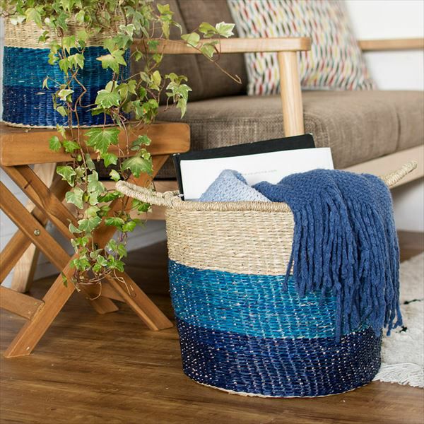 3色のグラデーションが美しい、大きめサイズのバスケット。
