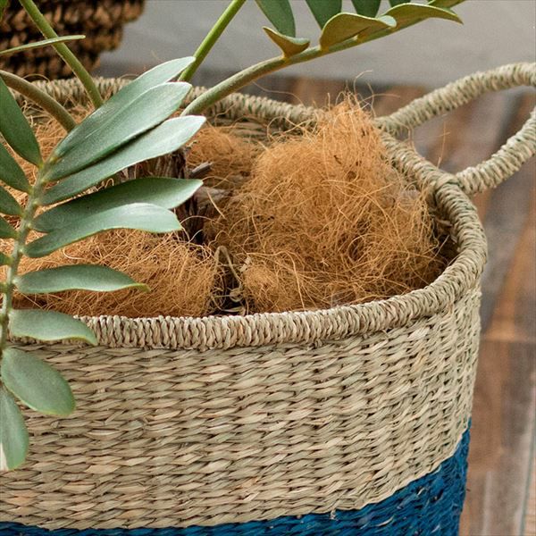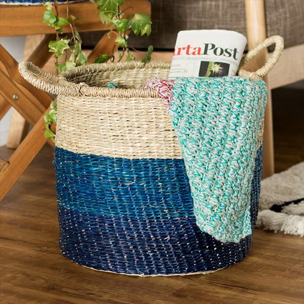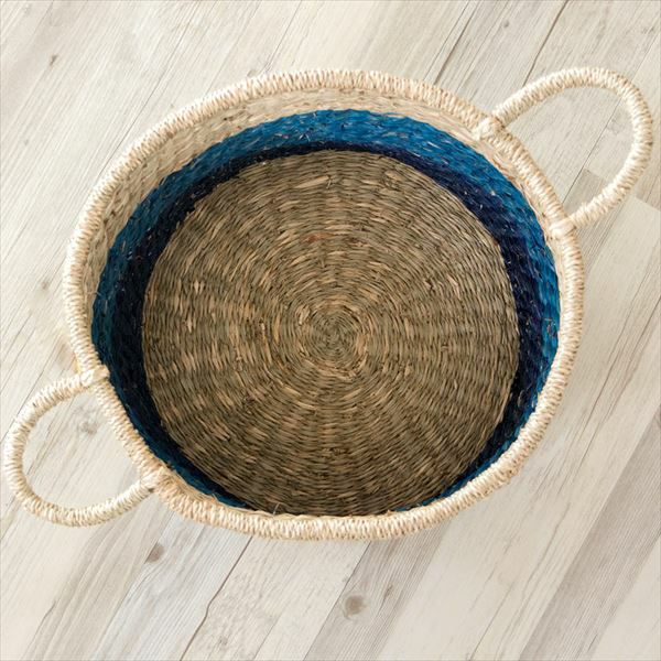 バスケット かご 収納 ハンドル付き シーグラス製 Lサイズ ブルー ナチュラル vk51203 【カゴ 籠 収納バスケット 丸型 持ち手 小物入れ 取っ手 深型 大きい おしゃれ キッチン 西海岸 ピクニック マリン ビーチ】