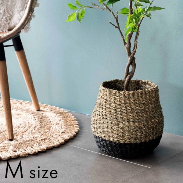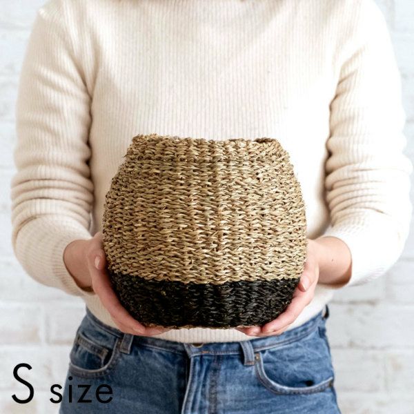ごみ箱 ダストボックス ガーデニング カゴ 籠 かごバスケット 【3個セット】プランターカバー ゴミ箱 バスケット かご シーグラス S M L サイズ バイカラー ブラック 黒 [set-51238-40]【 小物入れ 収納バスケット 収納かご おもちゃ入れ 収納ボックス おしゃれ 北欧 かわいい 西海岸 サーフスタイル コースタル BOHO ナチュラル 】