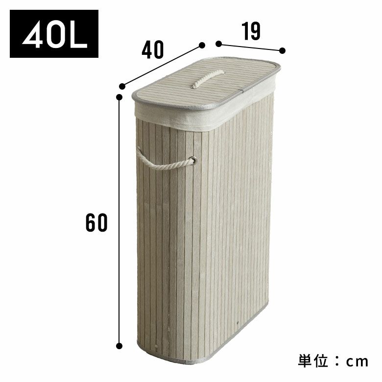 大人気バンブーバスケットにスリムタイプが新登場! 竹の質感が美しいスリムな収納バスケット 狭いスペースにも置けるからランドリーバスケットやゴミ箱にもちょうどいい。幅約20cmの縦長スリムタイプ / Lスリム 40L [67212]