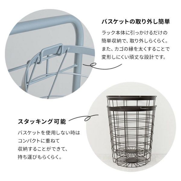 カゴがはずせるランドリーラック