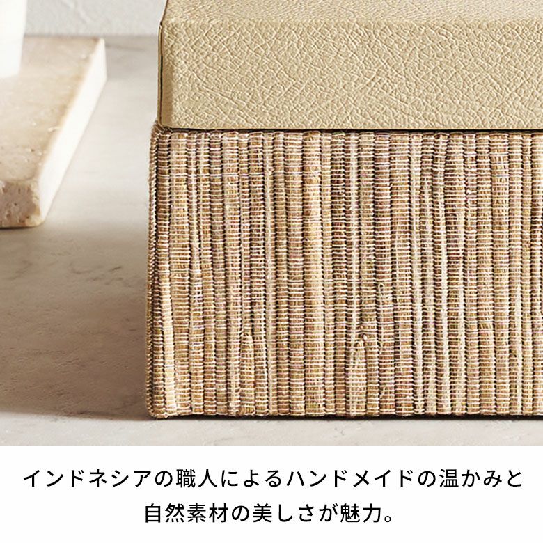 ・天然のウォーターヒヤシンス素材とイミテーションレザーの異素材の組み合わせが温かみと高級感を演出