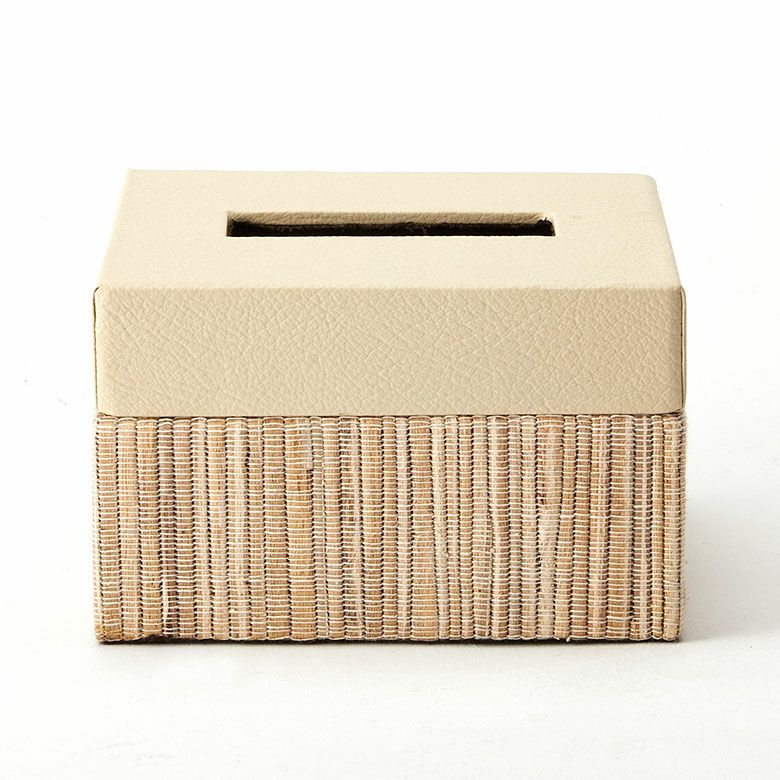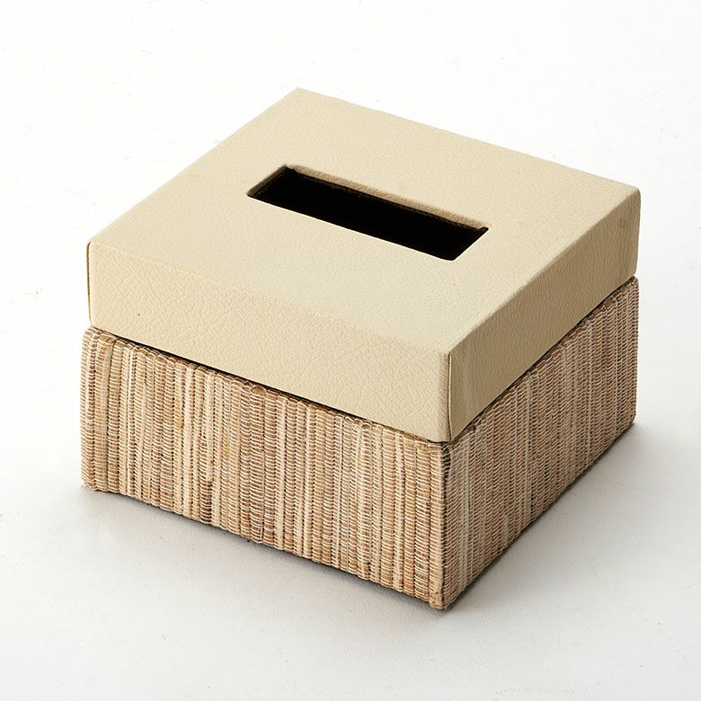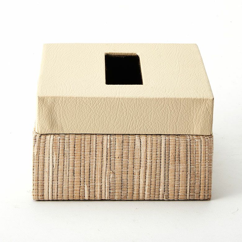 [ウォーターヒヤシンス素材×フェイクレザーのティッシュケース]