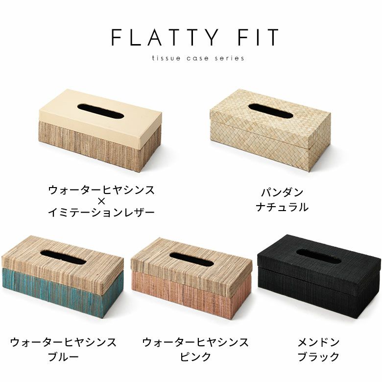 選べる天然素材と、豊富なサイズ展開であなたのお好みにぴったりフィットするティッシュケース【FLATTY FITシリーズ】が新登場!