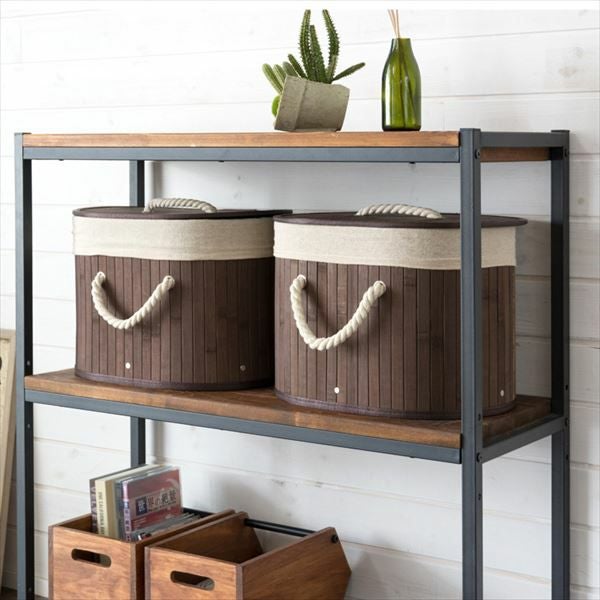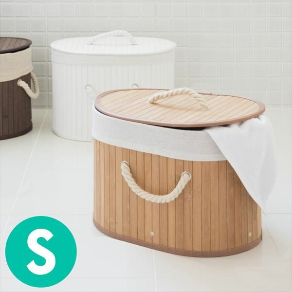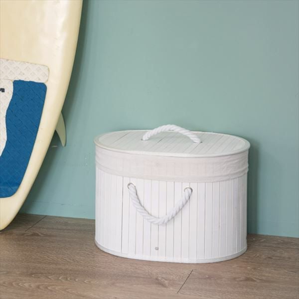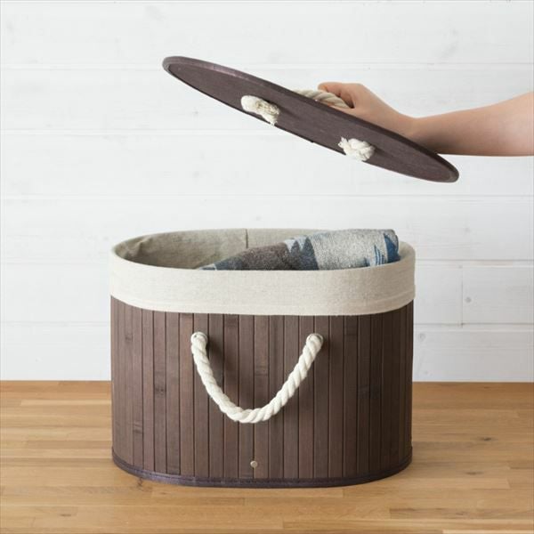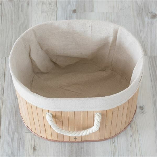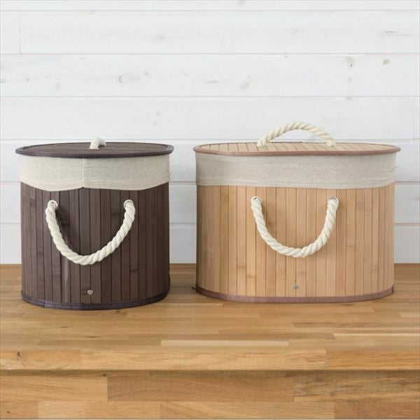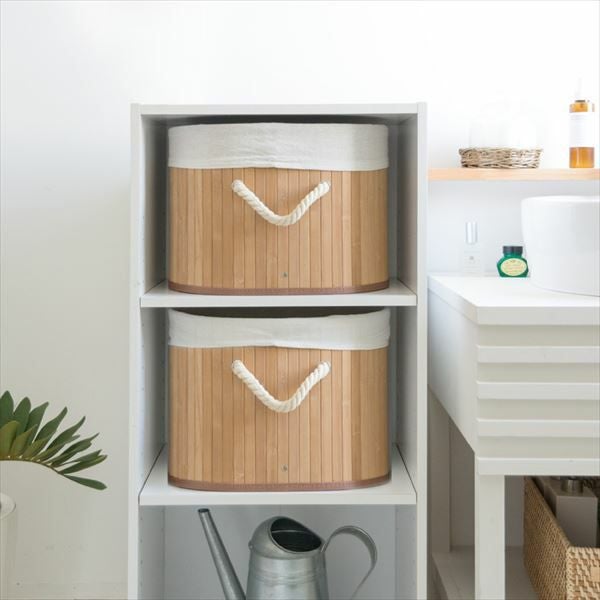 ロープハンドルのバンブーバスケット。カラーボックス対応。 ロープハンドルがおしゃれな オーバル型 バンブーバスケット ショートタイプ(66443-66444-66445)【生活雑貨のELEMENTS本店】