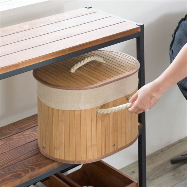 竹製のフタ付き。中身と生活感を隠してスッキリ収納。