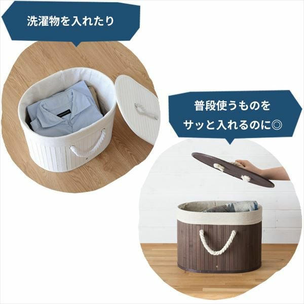 本体と同じ竹素材のフタ付きで、日用品の目隠し効果もあり、