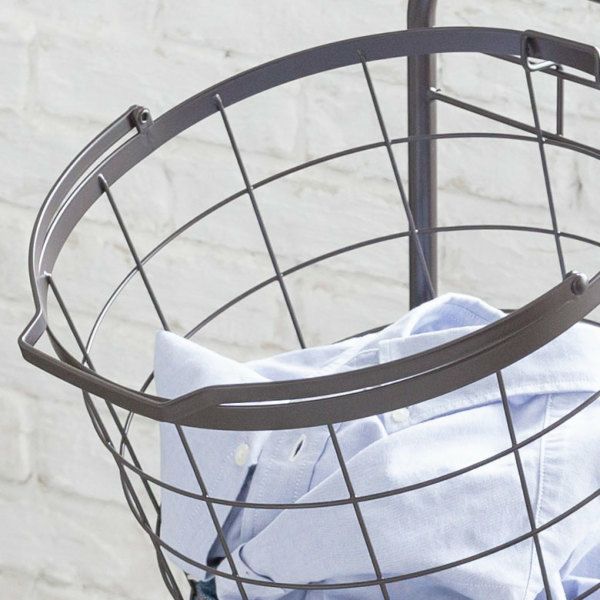ランドリー 洗面所 脱衣所 丸型 大容量 ワイヤーバスケット ランドリーラック バスケット かご 付 ワイヤー ラウンド 2段 縦型 ワゴン 約 W 35cm D 39cm H 108cm [96046]【 取っ手 取り外し可能 キャスター ラック 洗濯 棚 タテ スリム 収納 省スペース 洗濯物 入れ カゴ ボックス シンプル モダン 北欧 おしゃれ 西海岸 雑貨 】