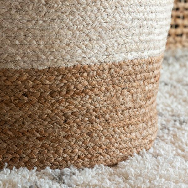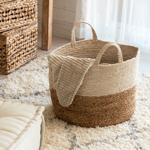 かごバスケット 吊るす収納 取っ手付き 持ち手付きかご 大きめ かご バスケット 持ち手付き バイカラー 大きい ジュート ナチュラル ホワイト [34535]【 収納かご 吊り下げ ぶら下げ 籠 カゴ 荷物入れ リビング収納 ハンドル 衣類 収納 おもちゃ入れ ランドリーバスケット 大容量 おしゃれ 北欧 西海岸 韓国 韓国インテリア 】