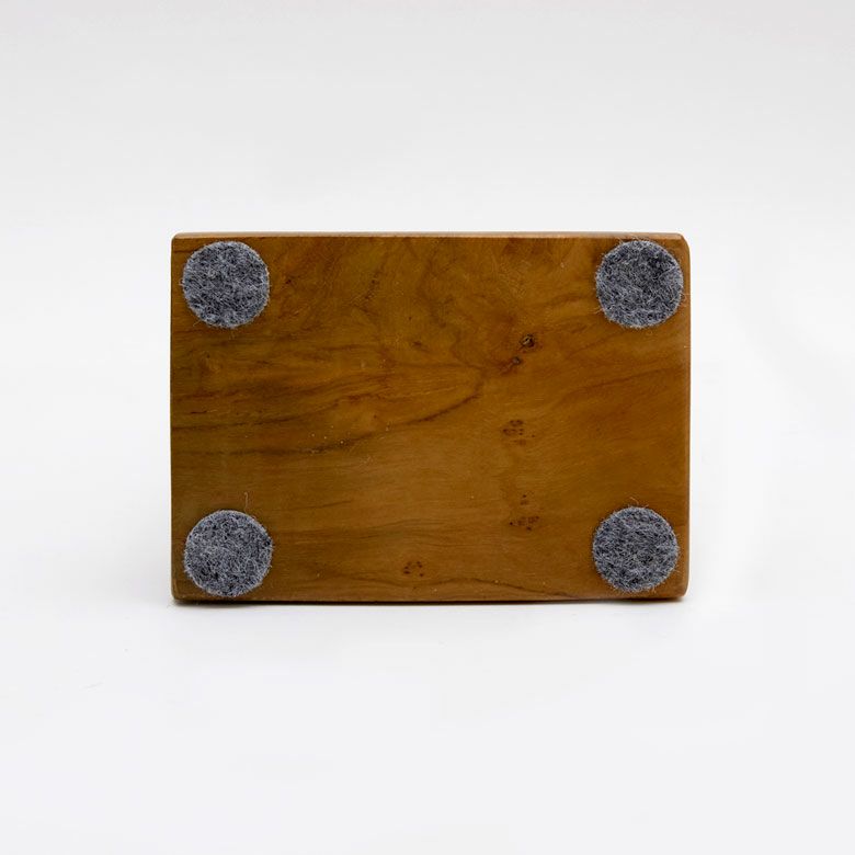 立てて置けて使い勝手もよい、同じくチーク素材のスタンド付きです。