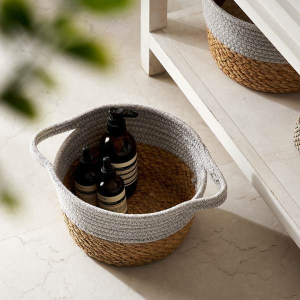 ロープバスケット 自立 ラウンド 小物収納 小物入れ 取っ手 コットンロープ リビング収納 おもちゃ入れ ランドリー タオル収納 リビング ダイニング キッチン 玄関 子供部屋 洗面所 バスケット コットンロープ ラッシュ製 持ち手付き バイカラー Sサイズ 約 W 22 × D 22 × H 14 cm かごバスケット 収納 かご 籠 丸 円形 丸型 プランターカバー 鉢カバー 5号鉢対応 インテリア おしゃれ 北欧 観葉植物 西海岸 韓国 [67119]