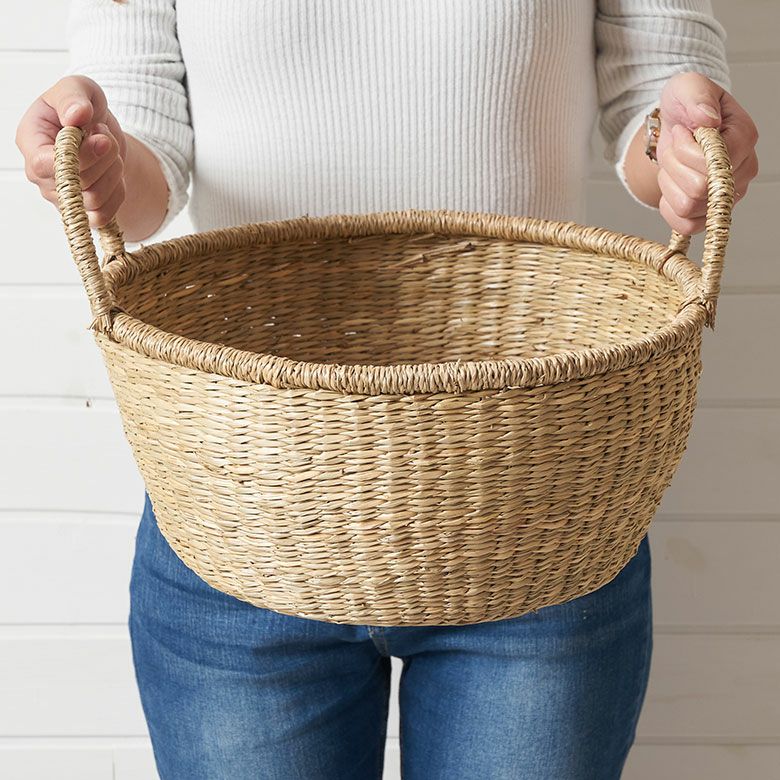 自立 ラウンド 小物収納 小物入れ 整理整頓 取っ手 ハンドル リビング収納 おもちゃ入れ ランドリー 洗濯 脱衣 リビング ダイニング キッチン 玄関 子供部屋 洗面所 プレゼント ギフト バスケット シーグラス 持ち手付き Lサイズ 約 W 34cm D 34cm H 17cm ナチュラル レッド ブルー かごバスケット 収納 天然素材 かご 籠 丸 円形 丸型 カゴ 小物入れ 収納ケース 収納かご 見せる収納 インテリア おしゃれ 北欧 雑貨 西海岸 韓国 [l-vn5]