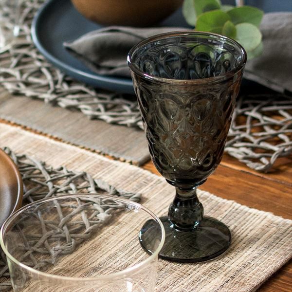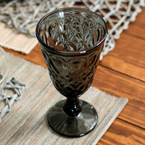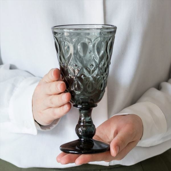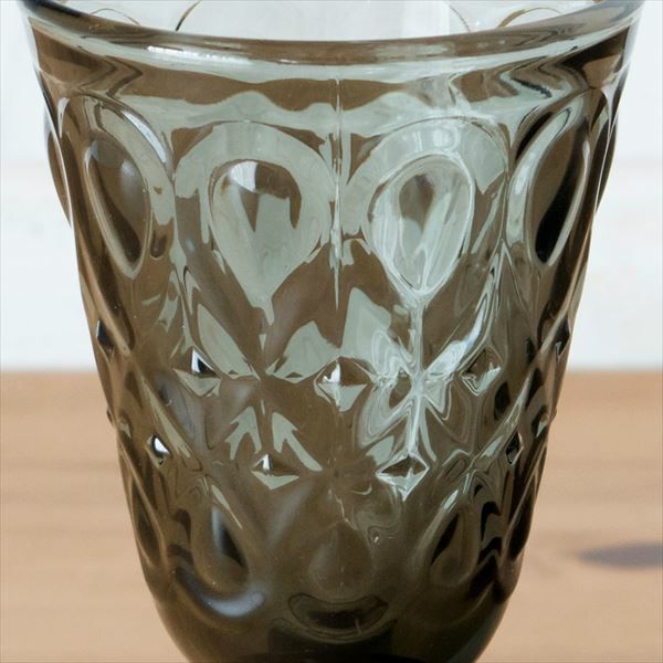 クラシカルなダイヤモンドカットが美しいグレーカラーのグラス カラフェと一緒に使えば、雰囲気がアップすること間違いなし! ワイングラスや、ウォーターグラスとして。 ホームパーティーで使用するのもおすすめです。 製造工程上、型の継ぎ目がみられる場合がございます。