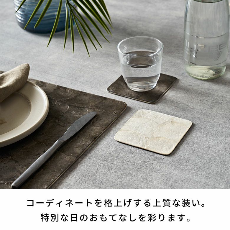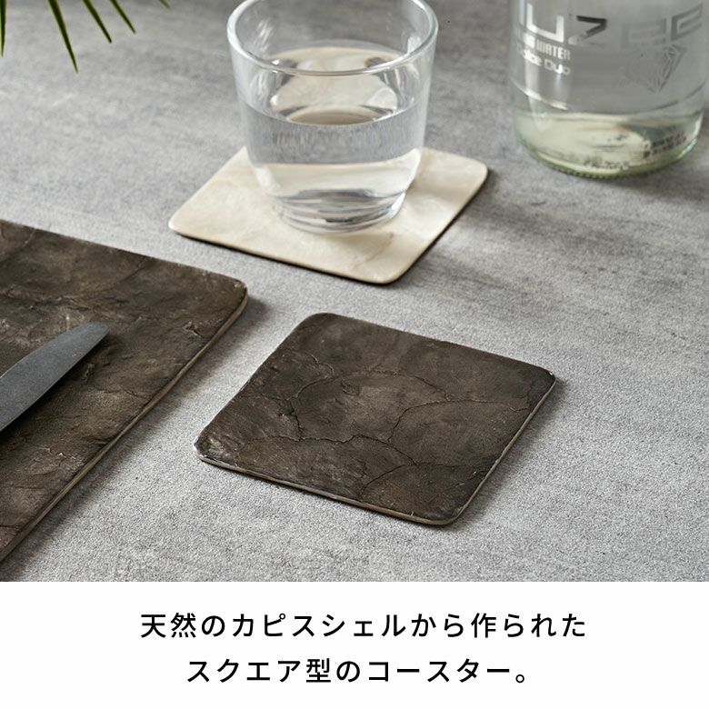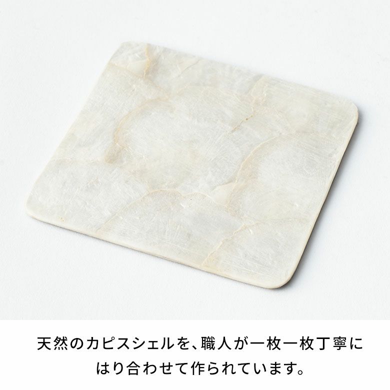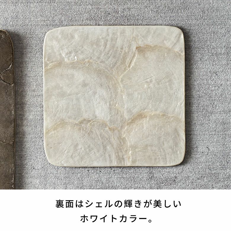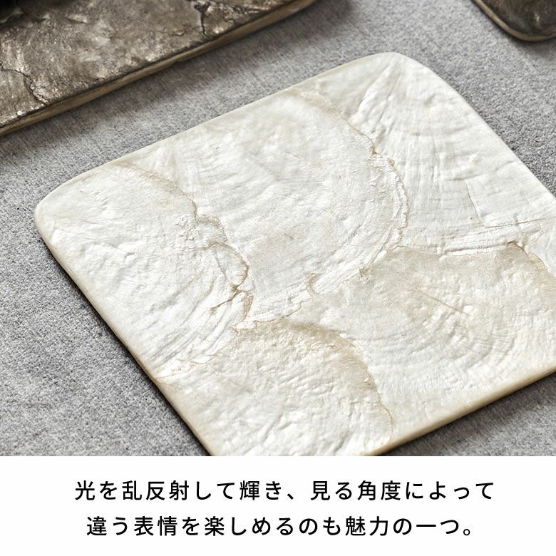 テーブル小物 収納トレイ パーティー クリスマス ハロウィン レストラン カフェ 店舗用 テーブルコーディネート デコレーショントレー ディスプレイトレー 什器 撮影 ギフト プレゼント コースター カピスシェル シェル 貝 スクエア 四角 1枚 リバーシブル 約 W 10cm D 10cm H 1cm トレイ トレー デコレーショントレイ ディスプレイトレイ テーブルウエア ダイニング キッチン キッチン雑貨 おしゃれ 北欧 リゾート 雑貨 インテリア 西海岸 [14118]