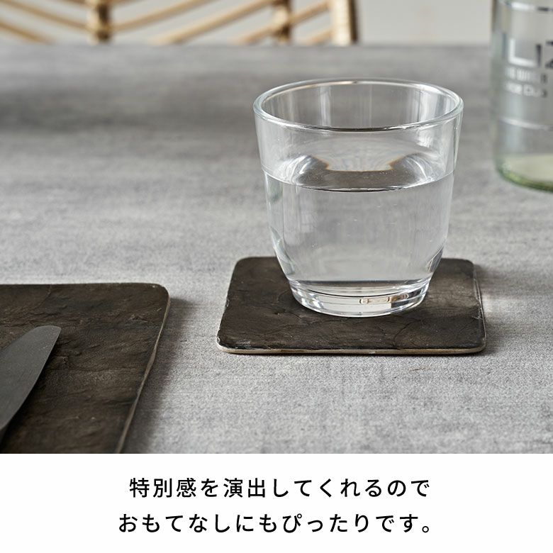 食器のカラーやお料理のテイストに合わせて、ランチョンマットやコースターを変えても素敵です。