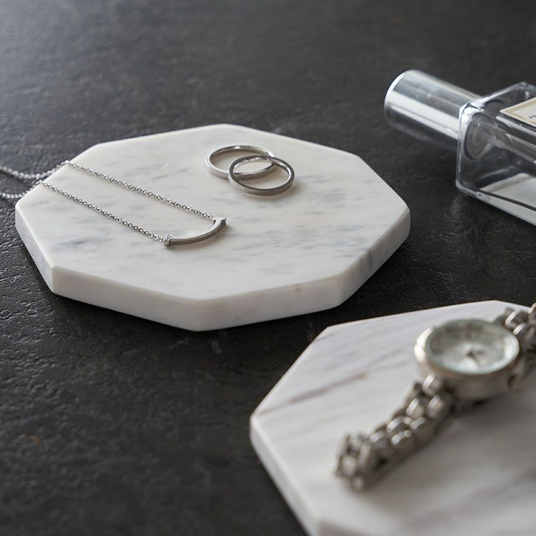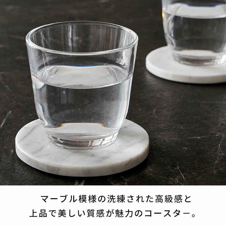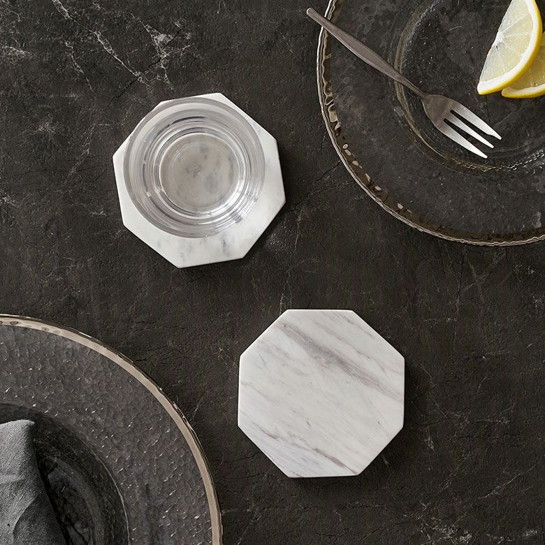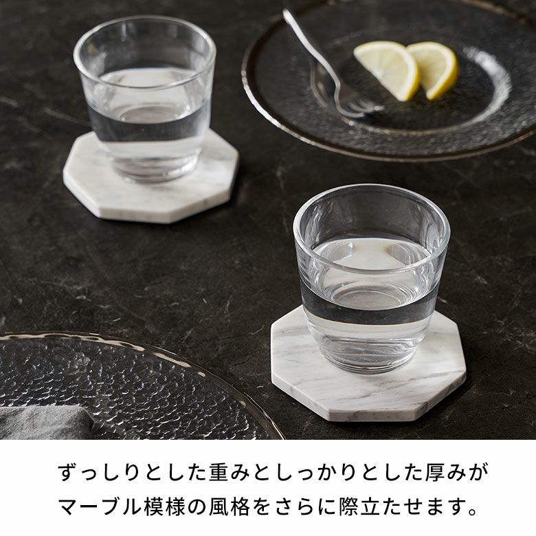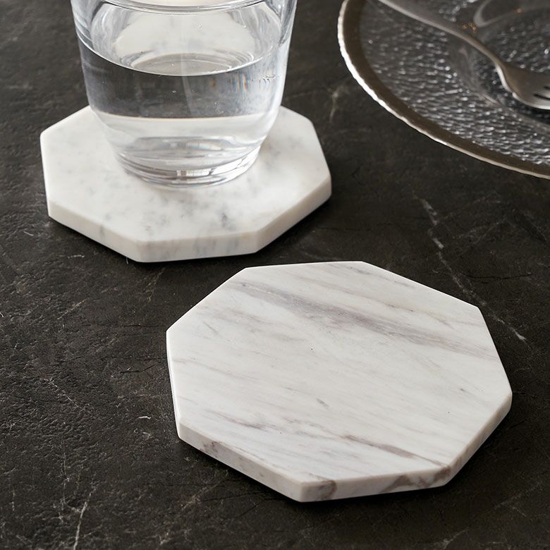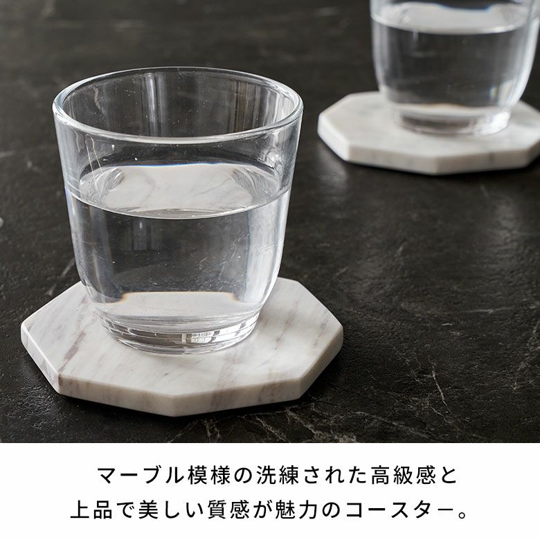 マーブル模様の洗練された高級感と上品で美しい質感が魅力のコースター 八角形の天然大理石のコースター2枚セット(ホワイトカララ)[14199]