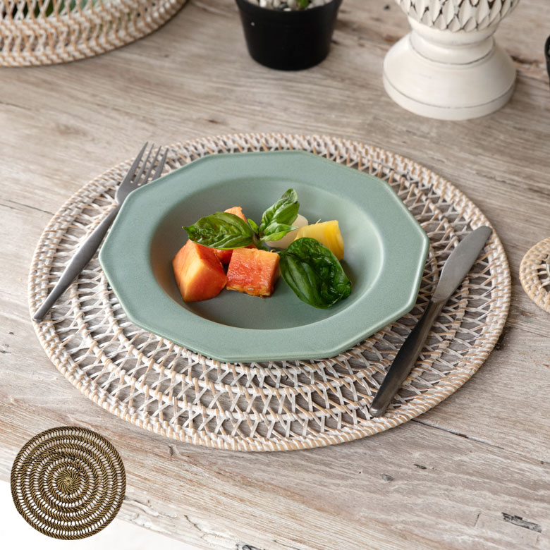 ナチュラルさが魅力 ラタン編みランチョンマット |
