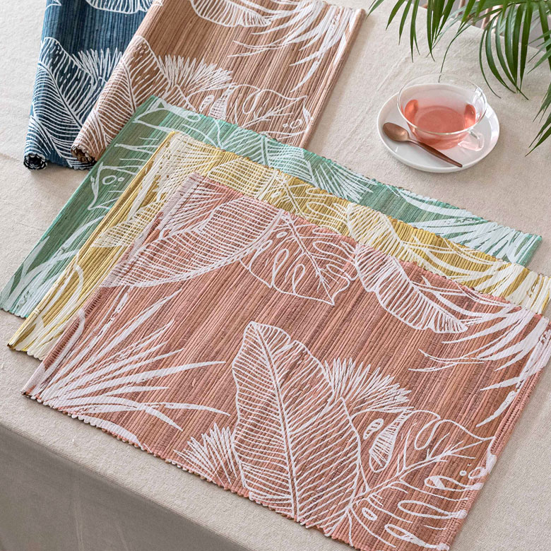 トロピカルな食卓に リーフ柄のランチョンマット |