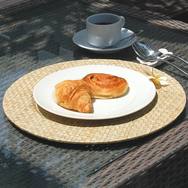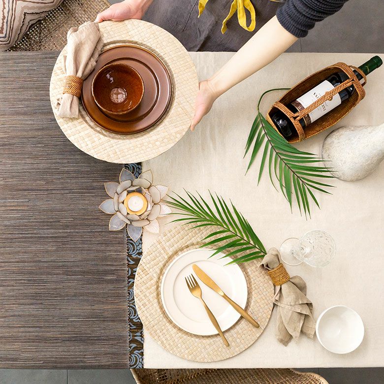 シンプルなお皿の下に敷くだけでアジアンな雰囲気を演出。