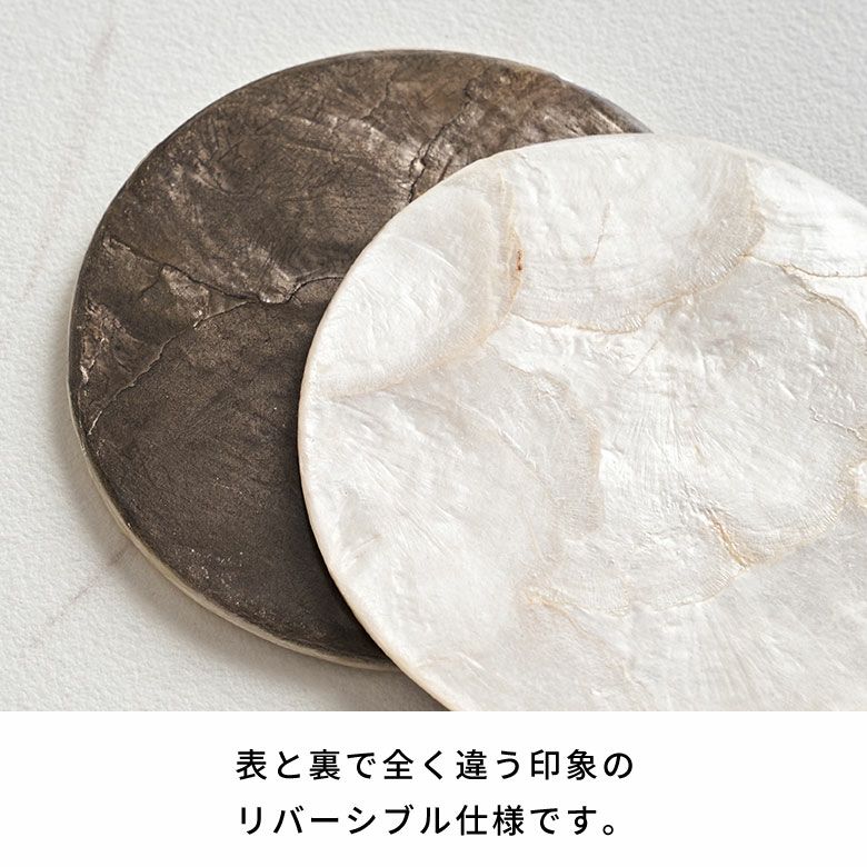 天然のカピスシェルを贅沢に使用したコースター。