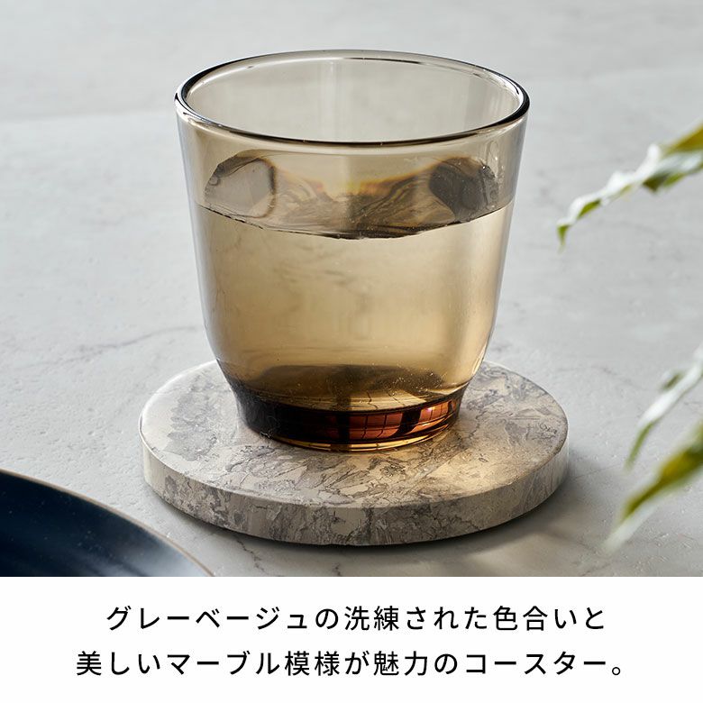 グレーベージュの洗練された色合いと美しいマーブル模様が魅力のコースター。素材には、インドネシアの伝統的な寺院や宮殿、彫刻にも使用されている高品質な大理石「ジャワマーブル」を使用。職人が手作業で丁寧に磨き上げた滑らかな表面は、触れるたびに上質さを感じさせます