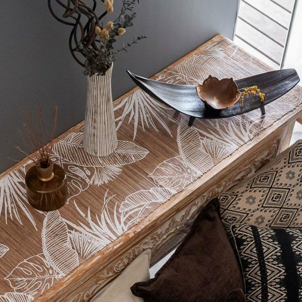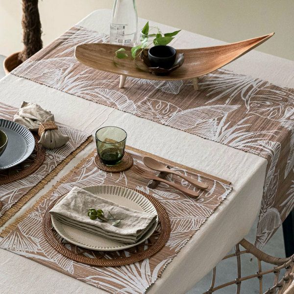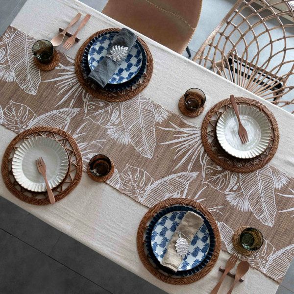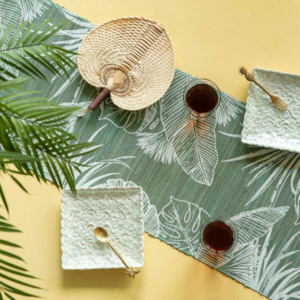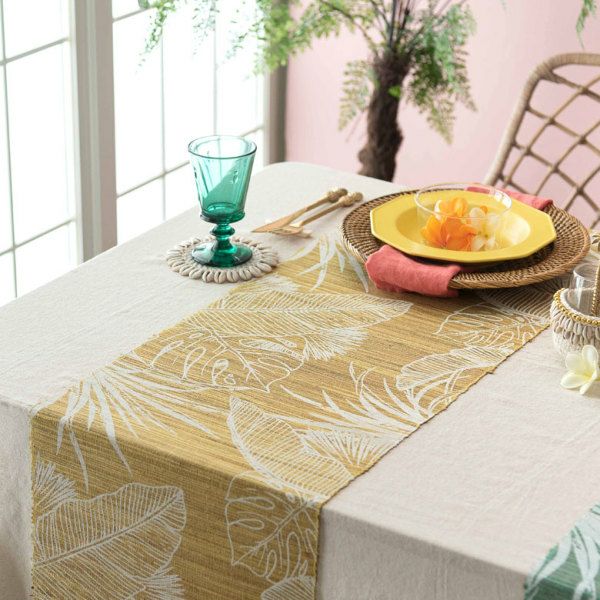いつもの食卓をぐっと華やかにしてくれる、リーフ柄のテーブルランナー。