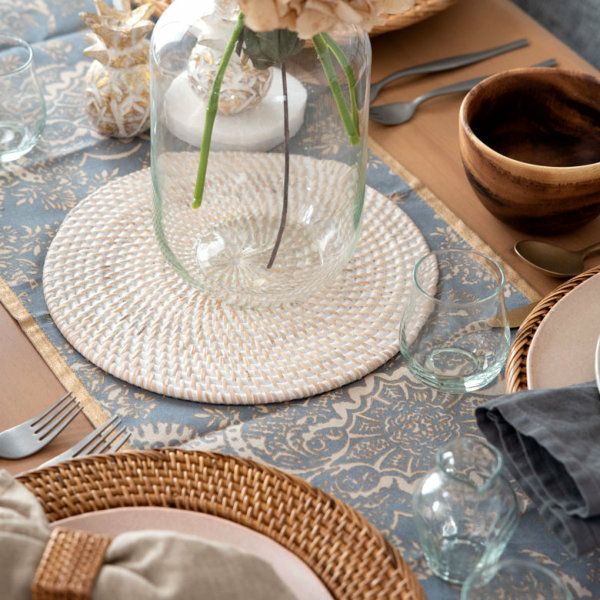 食器のカラーやお料理のテイストに合わせて、ランチョンマットやコースターを変えても素敵です。