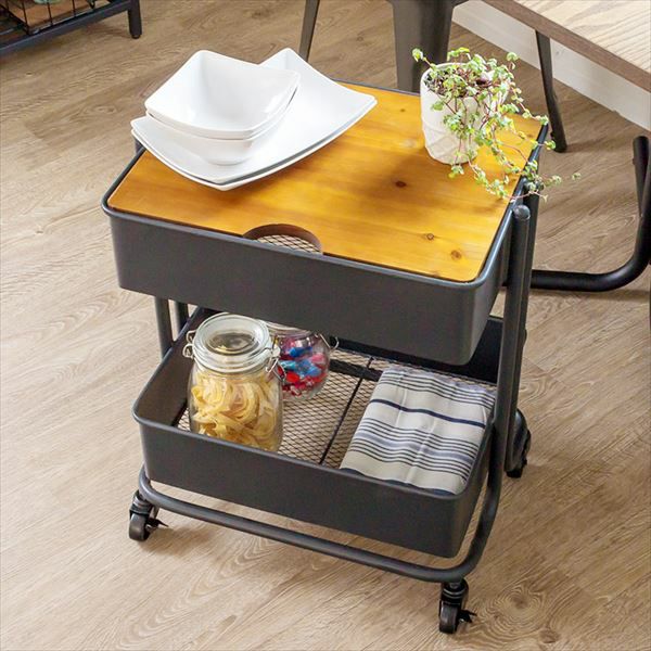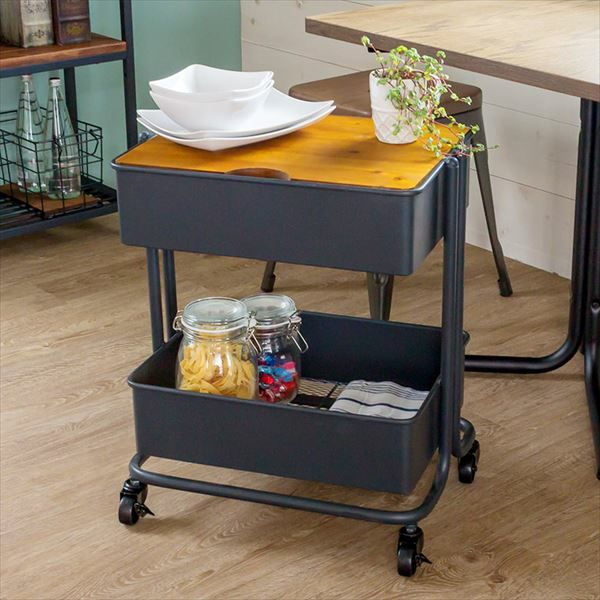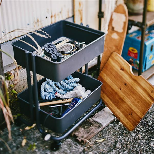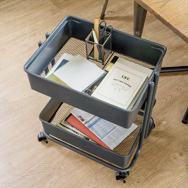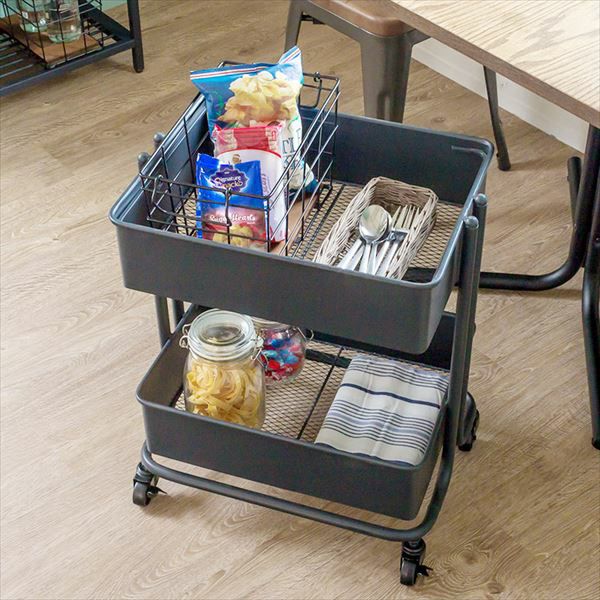 キャスター付きで、好きな場所に移動して使えるスチール製ワゴン。