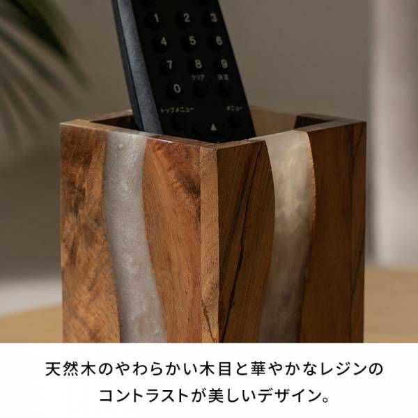 リモコン ペン カトラリー お箸 立て リモコンケース 卓上 文房具 リビング ダイニング カトラリー収納 リモコン入れ リモコンホルダー キッチンツールスタンド マルチスタンド 入れ ペン立て スタンドケース ウッド 木製 レジン 約 W 7.5cm D 7.5cm H 12cm カトラリースタンド ツールスタンド カトラリーケース リモコンスタンド リモコンラック ペン収納 リモコン収納 収納 デスク収納 おしゃれ 北欧 リゾート 雑貨 インテリア 西海岸 [34612]