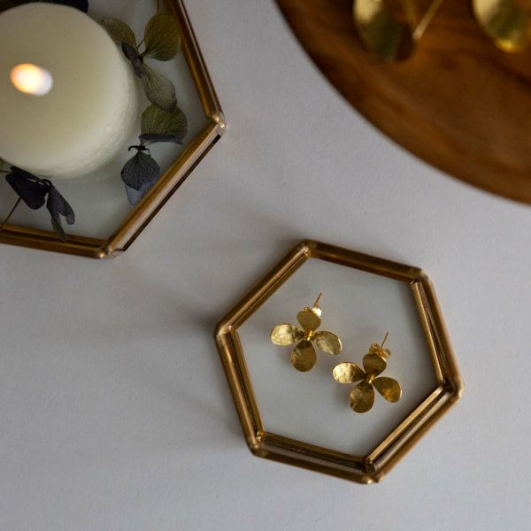 ピアス収納 イヤリング収納 クリア 透明 ゴールド プレゼント アクセサリーケース ガラスと真鍮 ガラスケース アクセサリー収納 六角形 Sサイズ [67049]【 ガラスケース ディスプレイ ジュエリーボックス ジュエリーケース ヴィンテージ 風 ビンテージ 風 アンティーク 風 おしゃれ 韓国 韓国インテリア 西海岸 】