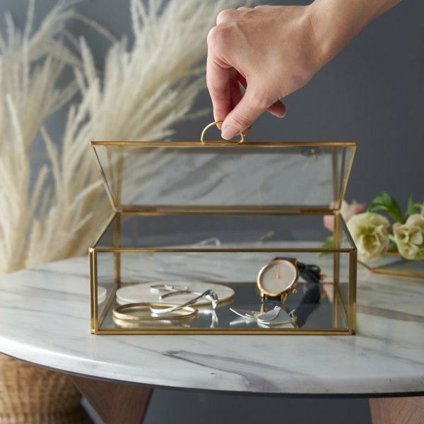 落ち着いたゴールドの真鍮フレームと、ガラスでできた