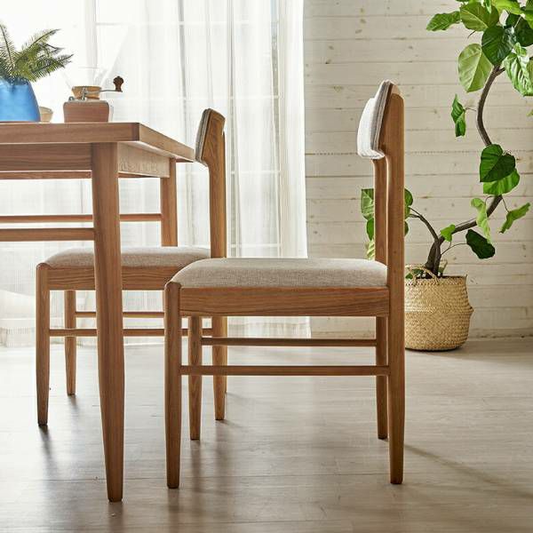 細めのウッドフレームが上品な印象のダイニングチェア。