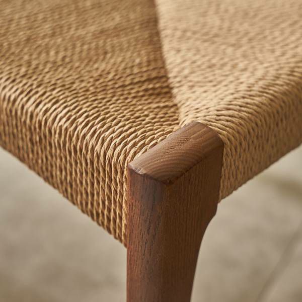 座面にペーパーコードを張った、ナチュラル感あふれる木製チェア。