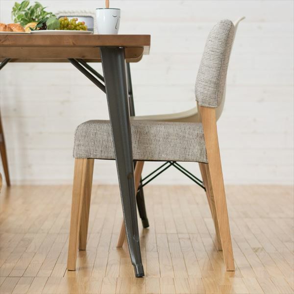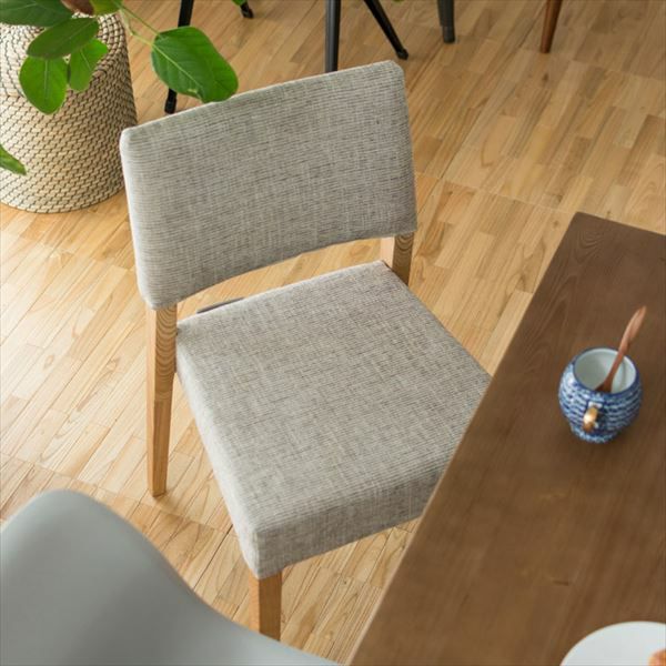 優しい色合いのアッシュ材フレームに、ナチュラル感のあるファブリックの組合せ。
